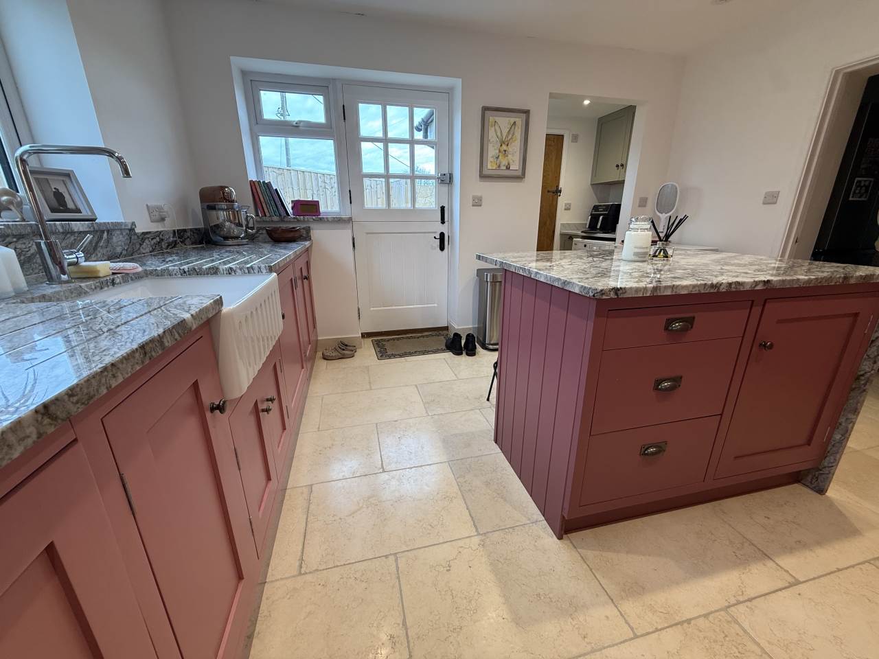 To the rear, the property boasts a beautifully fitted kitchen, thoughtfully designed with a central island and a range of integrated appliances including a fridge, freezer, dishwasher, and washing machine. The kitchen also benefits from a water softener, adding further practicality. Underfloor heating runs throughout the downstairs, enhancing comfort and efficiency.