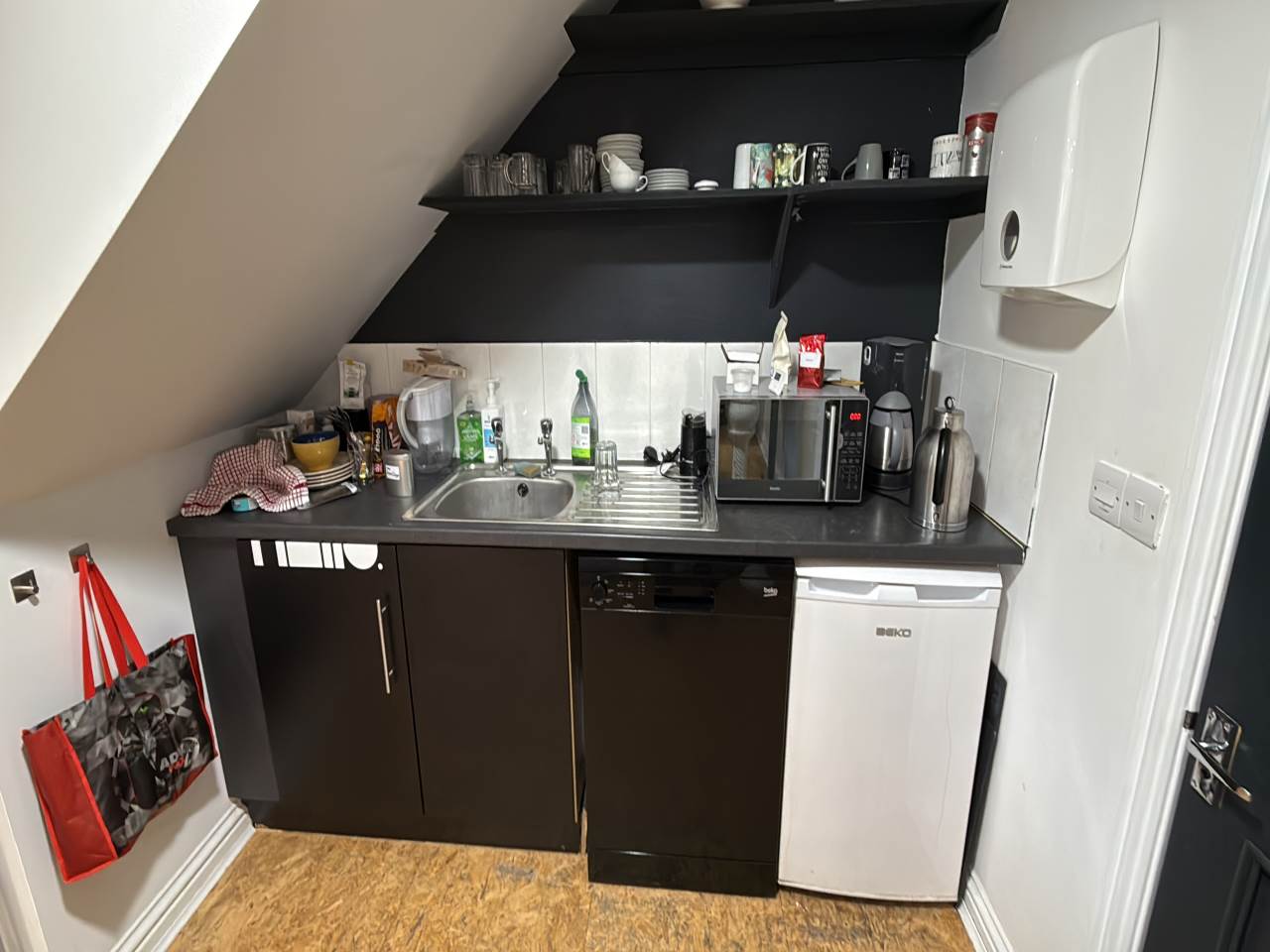 It has a monthly rent of £1400 and an additional £100 per month for service charge. The property can be rented either furnished or unfurnished, including office desks and other furnishings as seen in the pictures - at an extra cost.
