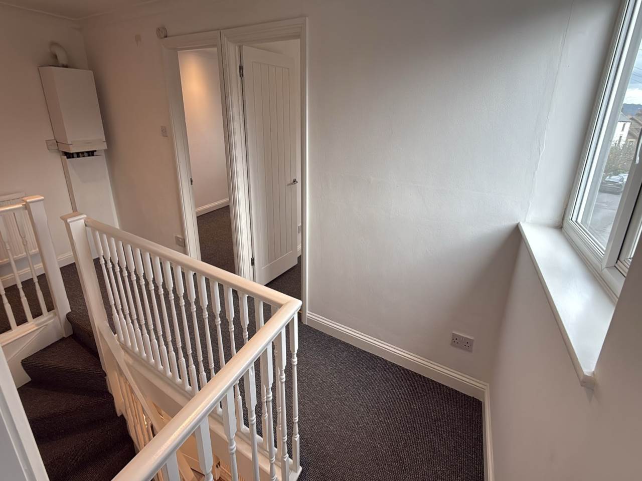 Upstairs, you’ll find a modern bathroom with a shower over the bath and three comfortable double bedrooms, all accessed via landing. The property is surrounded by ample outdoor space, with off-road parking for two cars and room for a good-sized shed.