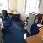 Three offices situated on the first floor of a purpose built modern office situated on the trading estate. The offices are approximately 600 square feet, double glazed windows, gas central heating, power points, lights, telephone sockets and also has a communal toilet and communal kitchen on the ground floor and allocated parking three vehicles. Currently being used as a taxi office but could be used for a range of different uses (subject to planning if needed). There is £150 to pay on top of the rent to pay for the gas, electric, water, sewage and business rates. Available 1st May 2022.