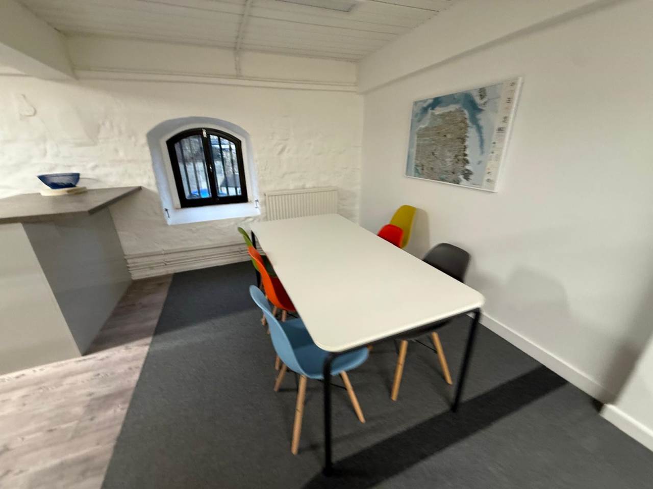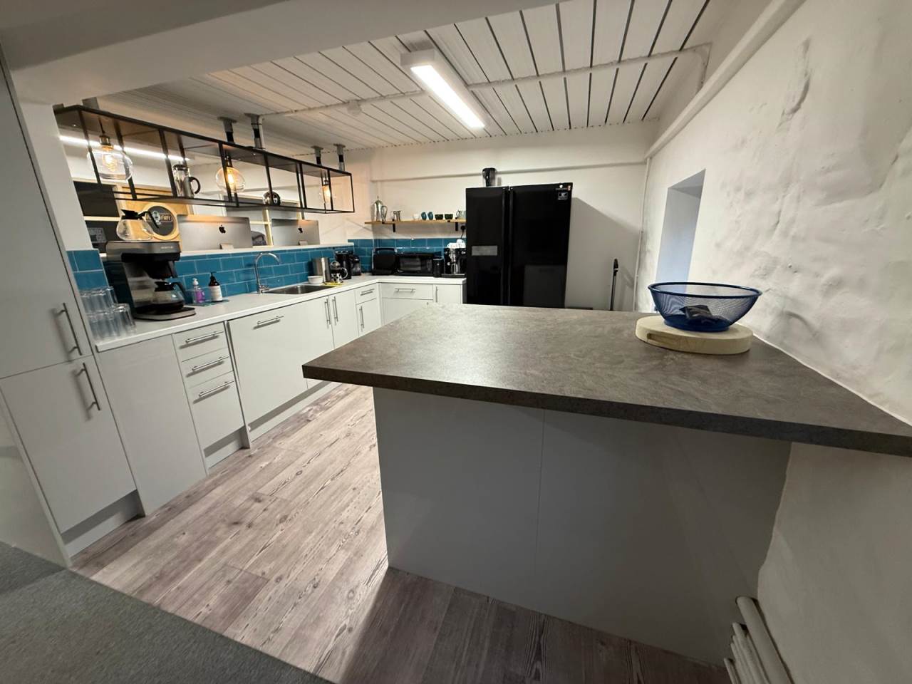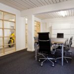 The office accommodation enjoys excellent natural light, with windows running along both principal elevations. The space has been thoughtfully configured to provide a predominantly open-plan office and studio environment, complemented by partitioned meeting rooms, kitchen facilities and informal break-out areas. Additional amenities include two WCs and a generous shower facility - ideal for those who wish to commute on bike!