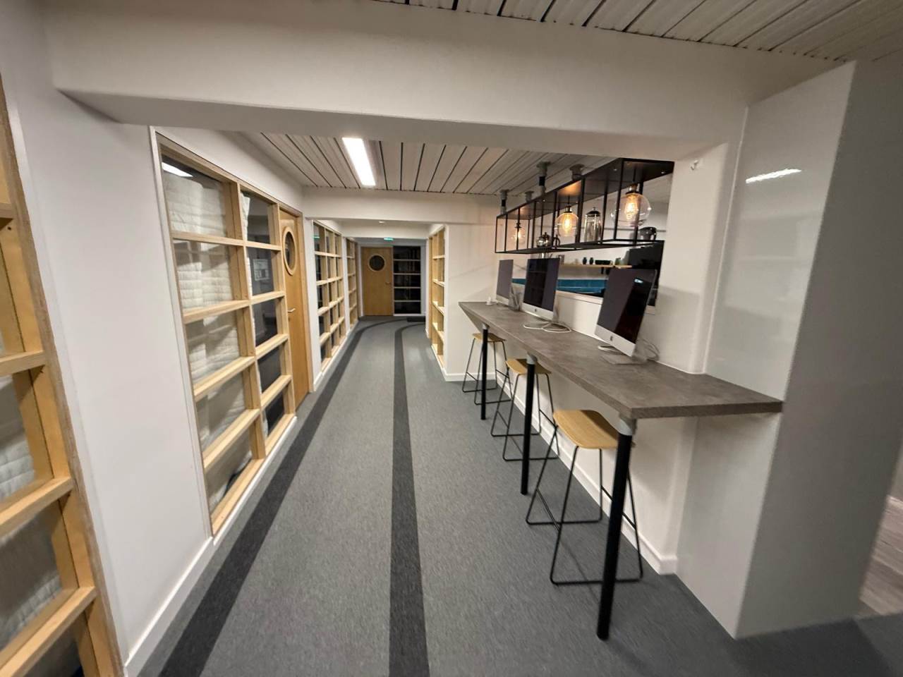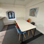 The office accommodation enjoys excellent natural light, with windows running along both principal elevations. The space has been thoughtfully configured to provide a predominantly open-plan office and studio environment, complemented by partitioned meeting rooms, kitchen facilities and informal break-out areas. Additional amenities include two WCs and a generous shower facility - ideal for those who wish to commute on bike!